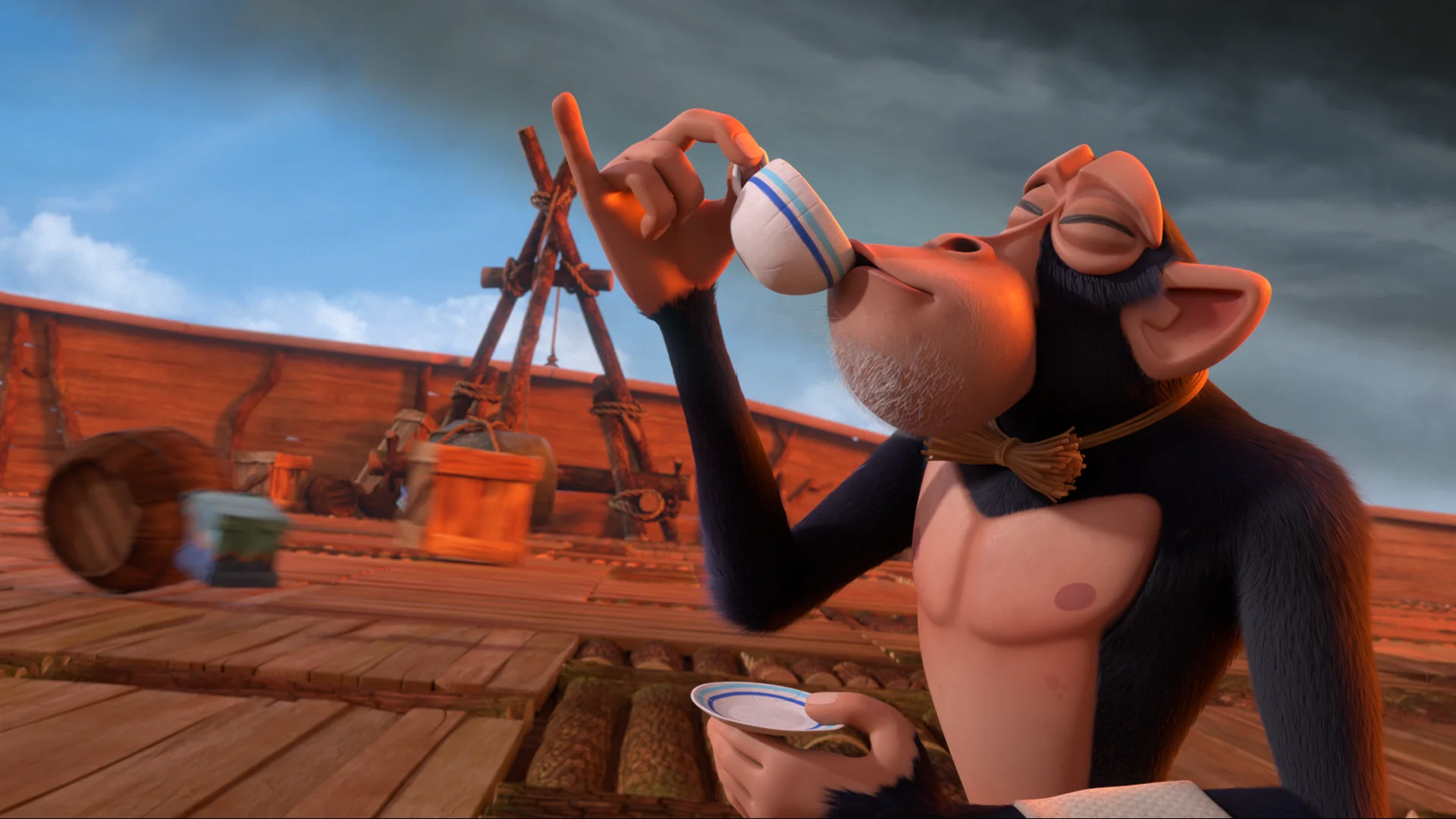 Kui nii edasi läheb, on lõpp käes! 147 päeva laevas ilma maitsva liha, leiva ja magustoiduta! Ümberringi ainult meri, ei mingit maad silmapiiril, laeval aga 50 tuhat erinevat ja väga näljast looma, lindu ja kaks sinna juhuslikult sattunud pesalooma. Aga see pole veel kõige hirmsam. Hirmus on see, et varsti saab otsa isegi too jube roheline puder. Ja siis … Siis ei hooli enam keegi reeglist „sina ei pea mitte teist elajat ära sööma“! Kaotanud igasuguse lootuse, laseb kuningas lõvi taevasse tuvi, et see lendaks kõrgele ja otsiks maad … Aga maa leiavad hoopis täiesti juhuslikult laevast välja pudenenud paharetid – grümp Leah ja pesaloom Finny! Torm heidab nad erakordselt kaunile saarele.