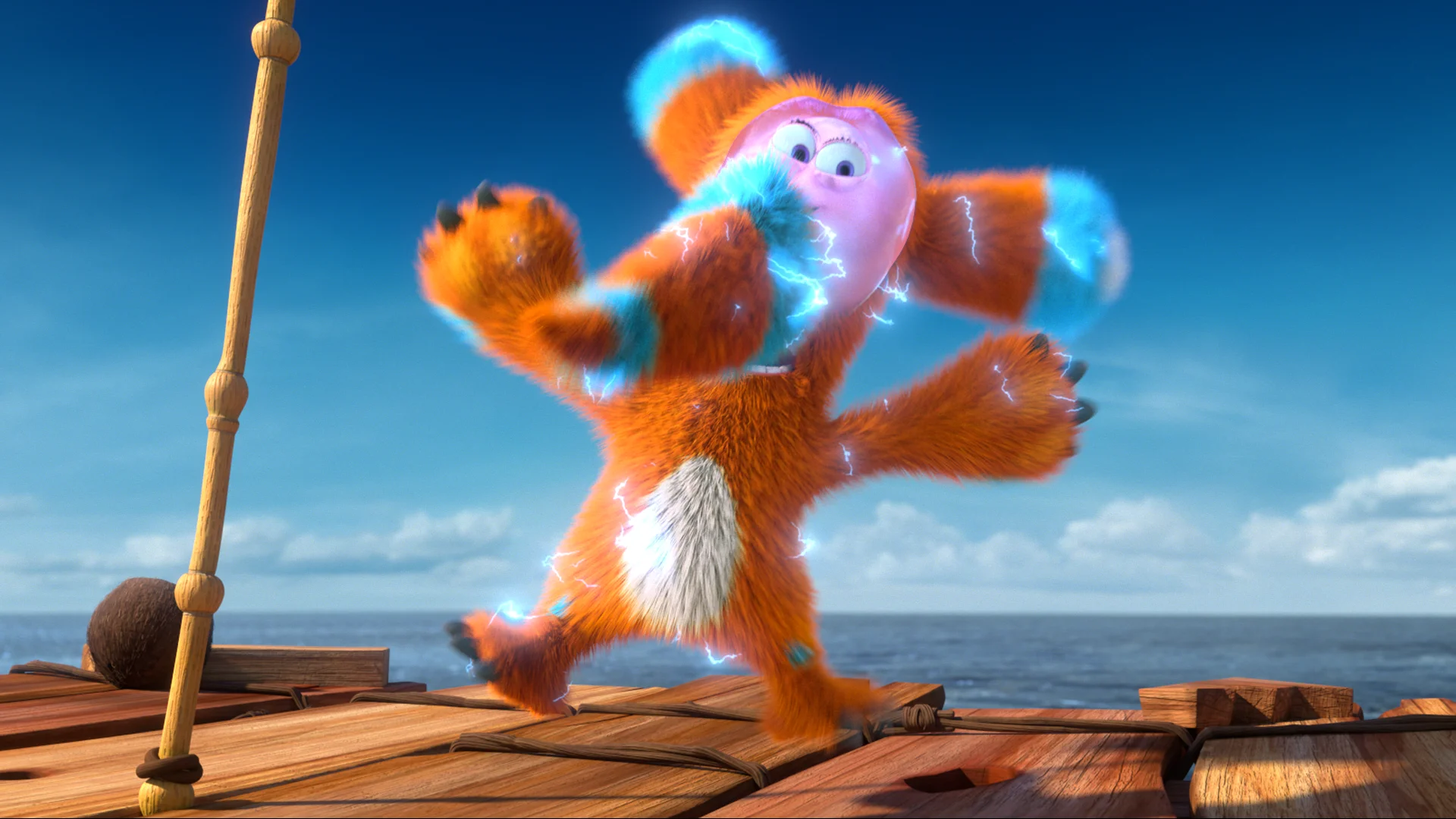 Raske uskuda, aga siin on olemas kõik, et toita ja katta terve nälginud laevatäis: päike, rohi, vesi, merehõrgutised, pitsa ja isegi apelsinikeeksid! Lausa maapealne paradiis, kuid … saar on juba hõivatud! Esimesed, kes selle saare leidsid ja asustasid, olid eri värvi ja erineva kasukaga pesaloomad! Finny pole kunagi näinud nii paljusid liigikaaslasi. Kas nad lasevad saabujad saarele ja lubavad neil jääda? Muidugi mitte! Ega pesaloomad ole oma muretut maad selleks loonud, et mingid võõrad selle ära rikuksid! Asja teeb keerulisemaks ka see, et ükski loomake ei aima, milline üllatus on varuks saarel asuval uinunud vulkaanil …